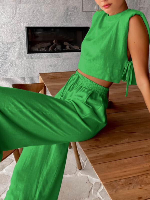 Lniany dwuczęściowy zestaw ze spodniami z szerokimi nogawkami