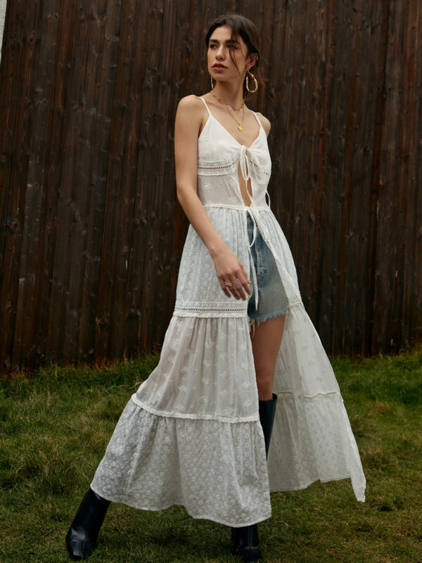 Sukienka z mieszanki bawełny z kwiatowym wiązaniem z przodu cami