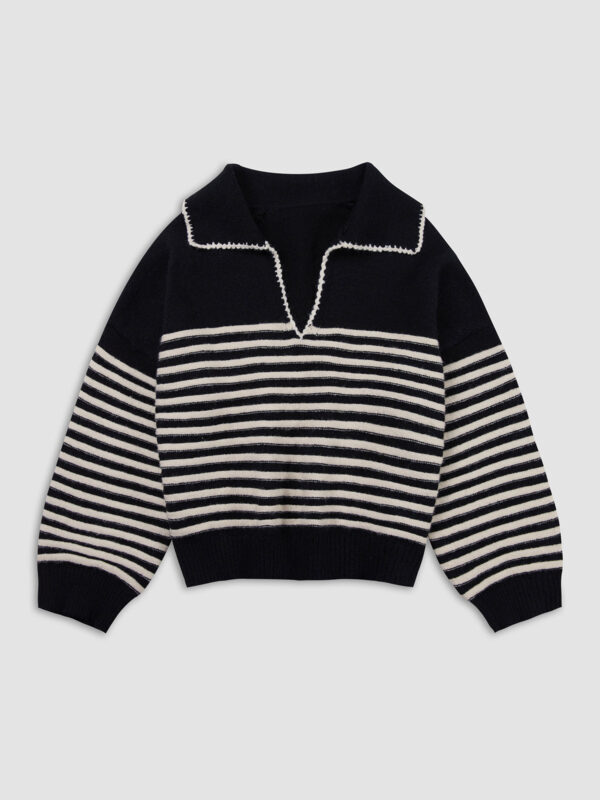 Sweter z zabudowanym dekoltem i modnym wzorem