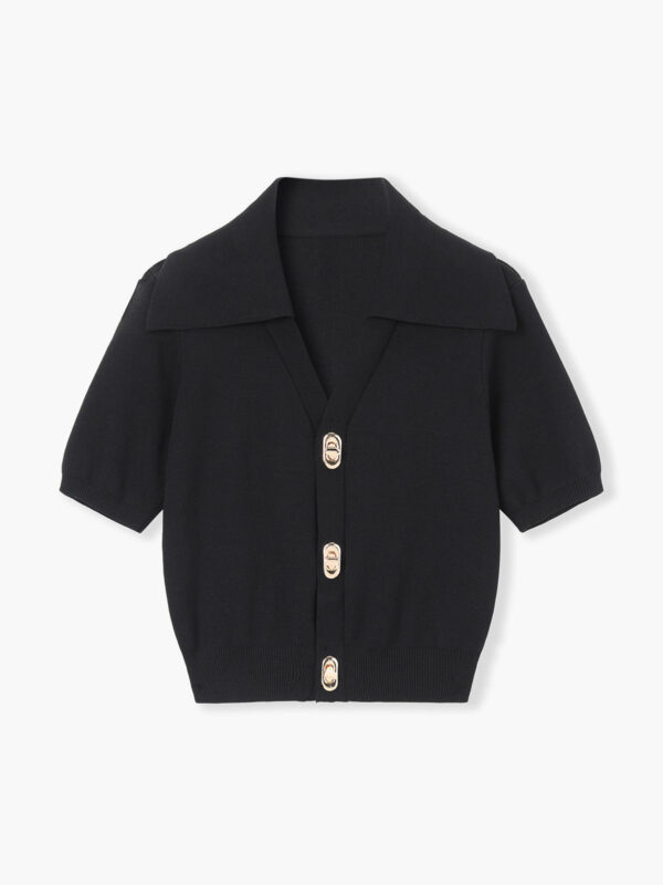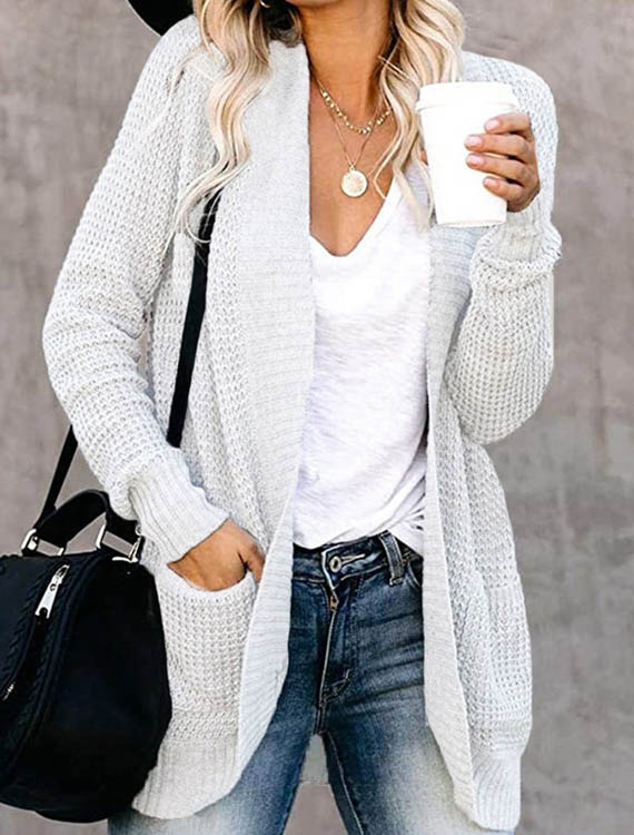Sweter zapinany na guziki z kieszeniami i lamówkami
