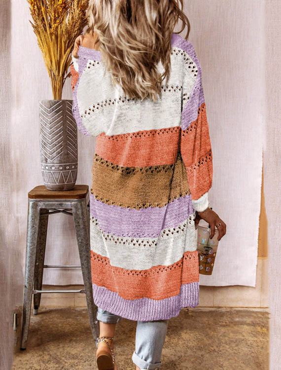 Kardigan długi w szerokie pasy