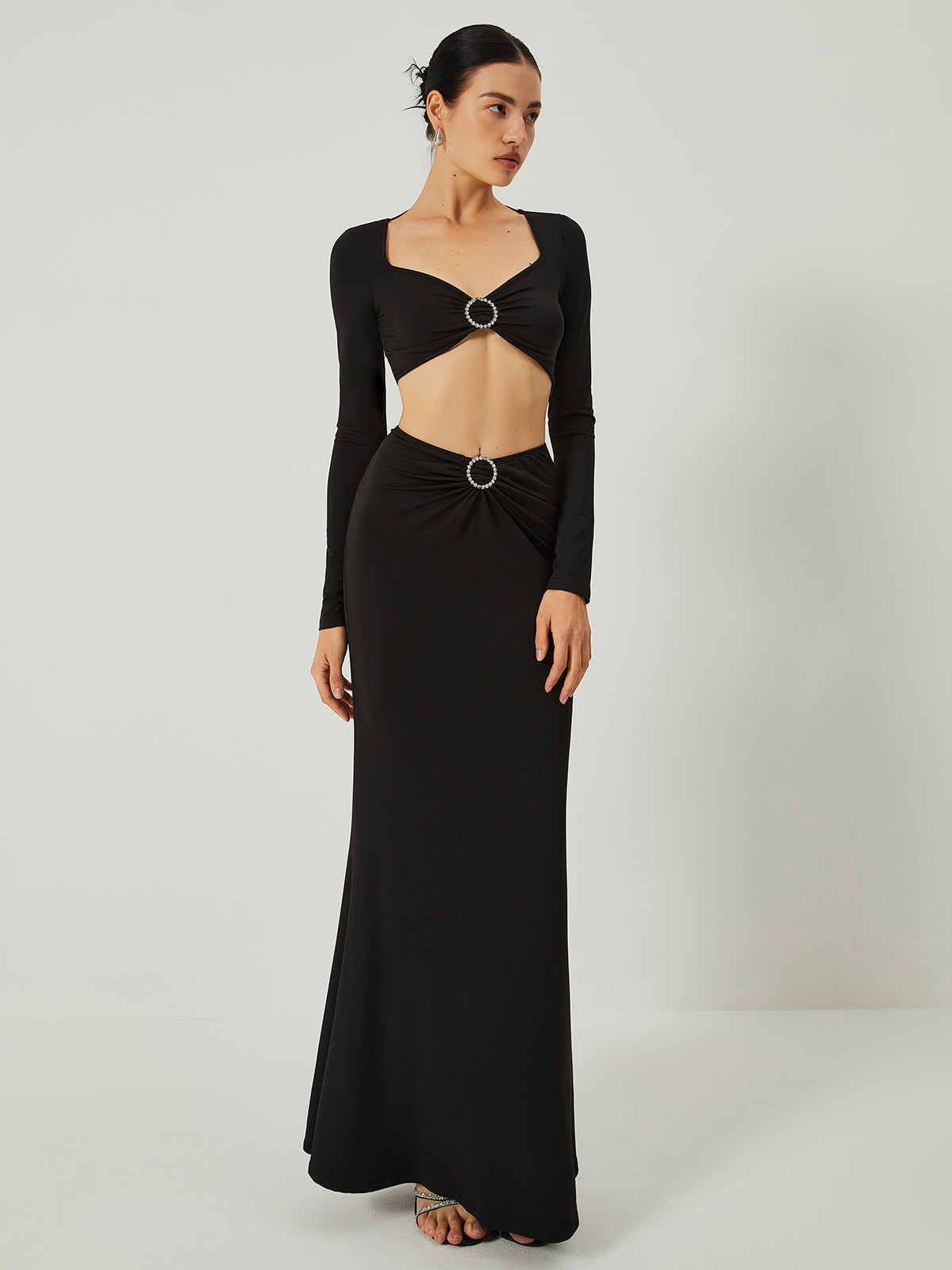 Design: Metal, Odkryte plecy, Wycięcie Styl: Seksowny, Romantyczny Grubość: Regularna Materiał: Jersey Długość rękawa: Długi rękaw Okazja: Ślub, Wakacje, Impreza Rozmiar i dopasowanie: Rozciągliwość: Wysoka rozciągliwość Typ dopasowania: Dopasowany