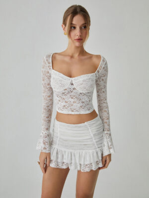 Design: Plisowany Styl: Codzienny, Seksowny, Romantyczny Grubość: Regularna Materiał: Siatka, Koronka Okazja: Wypoczynek, Wakacje Rozmiar i dopasowanie: Elastyczność: Lekka elastyczność Typ dopasowania: Dopasowanie slim