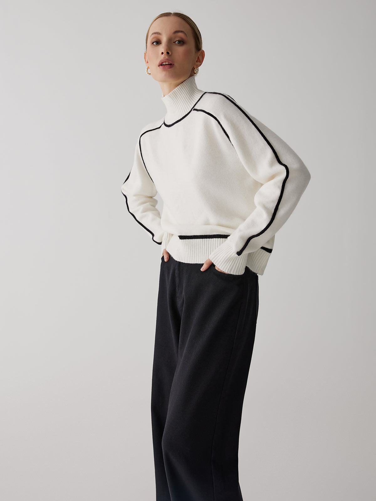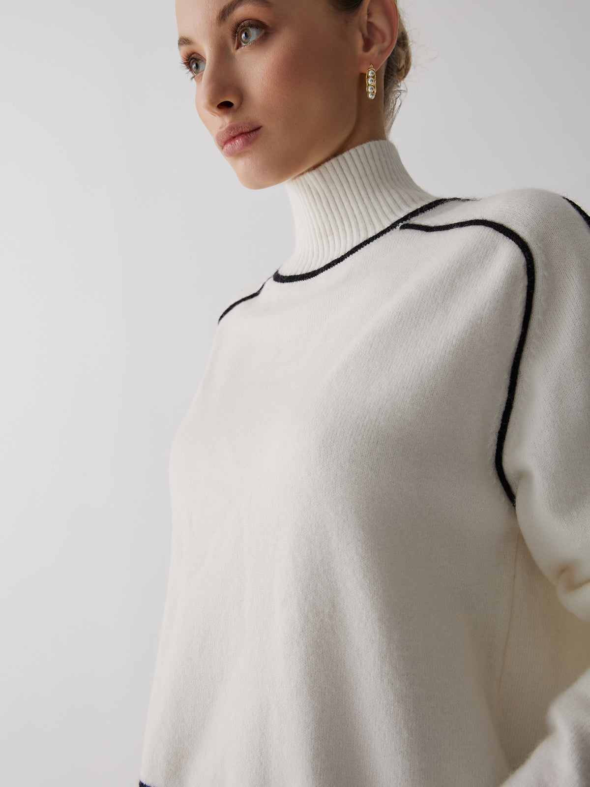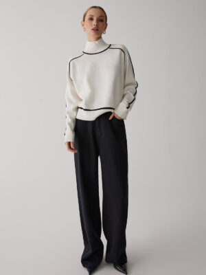 Design: Kontrastowe Obszycie Styl: Codzienny Grubość: Regularna Materiał: Dzianina Okazja: Wypoczynek, Praca Rozmiar i dopasowanie: Elastyczność: Średnia Elastyczność Typ dopasowania: Luźny Krój
